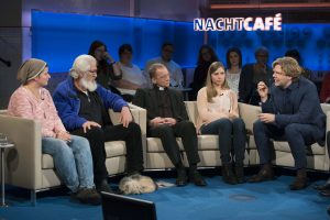 Dann wurde wir alle verkabelt und bekamen ein Mikrofon angesteckt. Der Nachtcafe Moderator Michael Steinbrecher holte schließlich jeden Gast einzeln ab, um einmal Probe zu sitzen im Studio. Dort plauderten wir ein paar Minuten und warteten dann auf den Start der Sendung.