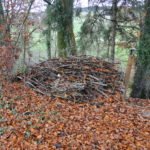 Die Villa im Asthaufen erinnert mich auch an die Survival Kurse, die ich gemacht habe. Dort lernt man eine ähnliche Bauweise als Unterschlupf zu bauen. Ein starker Ast dient als Träger für ganz viele kleine Äste, die quer an ihn angelegt werden. Irgendwann wird dann die Grundkonstruktion mit Laub bedeckt.